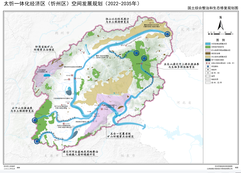 堅持把全方位推動高質(zhì)量發(fā)展作為總體目標,把一體化發(fā)展作為根本遵循,以基礎(chǔ)設(shè)施建設(shè)為先導,以產(chǎn)業(yè)園區(qū)為載體,以區(qū)域文化為紐帶,將忻州區(qū)打造為“融入京津冀和服務大循環(huán)的門戶樞紐、山西中部城市群先進制造高地、世界級文化休閑康養(yǎng)目的地、有機旱作農(nóng)業(yè)優(yōu)勢特色產(chǎn)業(yè)標桿地、生態(tài)秀美的高品質(zhì)宜居地”。到2025年,國土空間開發(fā)與保護的協(xié)調(diào)性大幅提升,山西中部城市群“北引擎”打造初見成效;到2035年,人與自然和諧共生的國土空間格局基本形成。