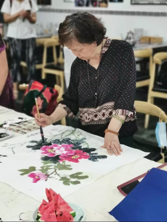 正在學(xué)習(xí)國(guó)畫(huà)創(chuàng)作的社區(qū)老年人。 求是記者 韓辰 攝