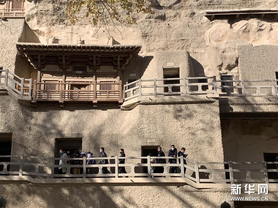 11月9日,游客在莫高窟參觀。新華社記者 張玉潔 攝
