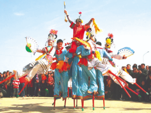 閣蹺類。以道具制作精妙神奇、表演技巧驚險(xiǎn)動(dòng)人為廣大群眾喜愛,其中晉南地區(qū)的最有代表性。閣蹺主要分推棍、背棍、劃棍、高蹺。