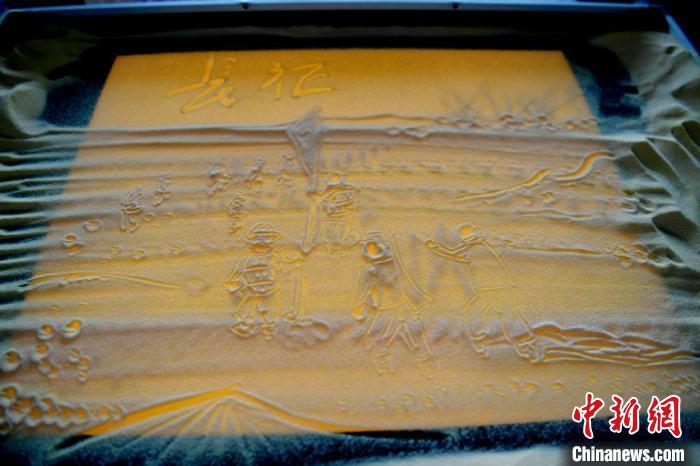 中新網(wǎng)長春7月5日電 (孫博妍)吉林動畫學院畢業(yè)生滕琦昕,近日用沙畫的形式重現(xiàn)了紅軍長征奇跡,并將創(chuàng)作過程錄制成視頻上傳到了網(wǎng)絡,獲得大量贊譽。記者5日在學校的工作室內(nèi)看到了滕琦昕創(chuàng)作的沙畫。