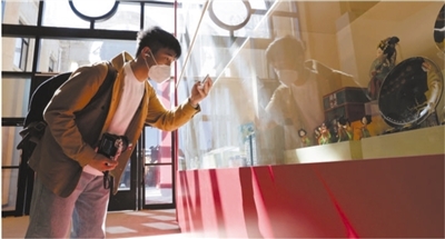 參觀者在“奮進(jìn)新時(shí)代”主題成就展上拍攝非遺作品和文創(chuàng)精品。新華社記者 張玉薇攝