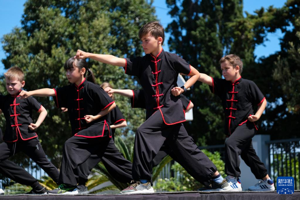 這是4月23日在馬耳他桑塔露琪亞的中國古典園林“靜園”拍攝的武術(shù)表演。新華社發(fā)(喬納森·博格攝)