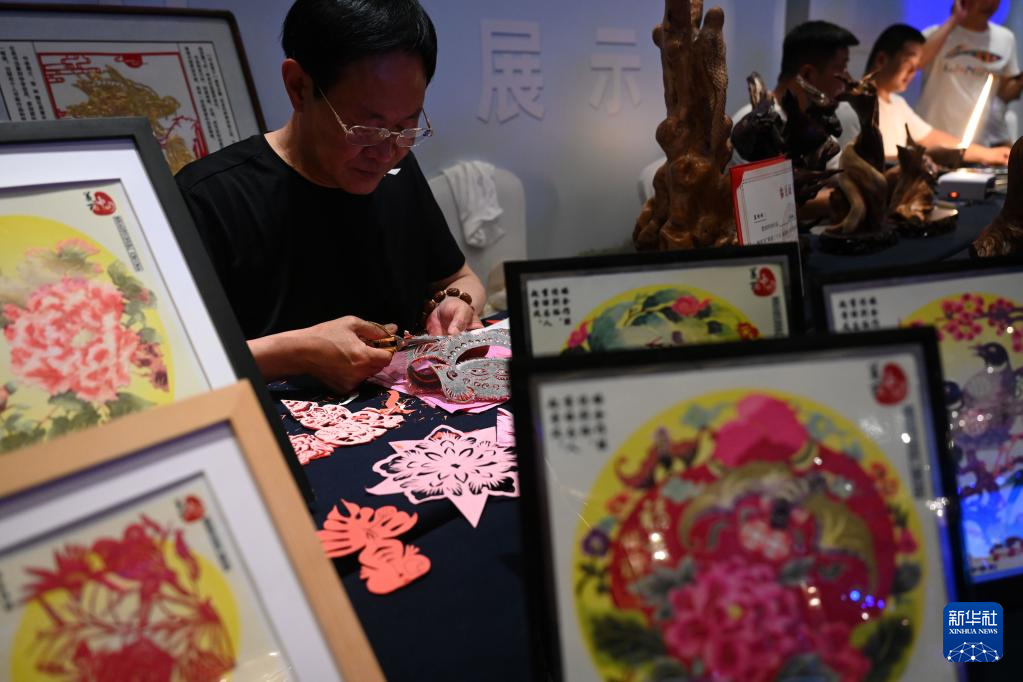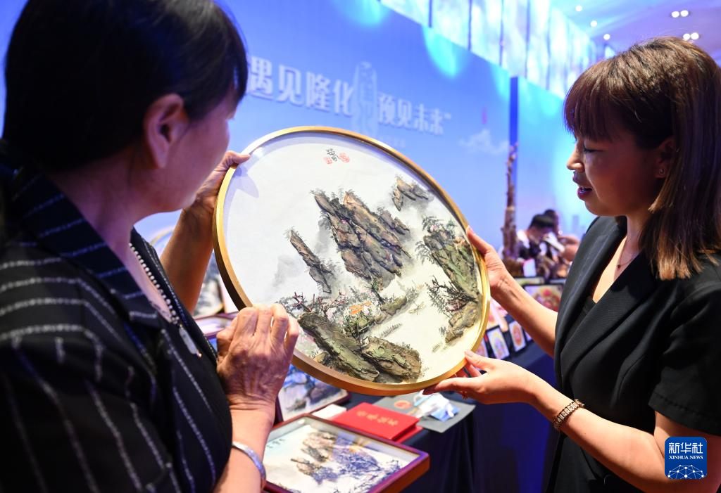 當(dāng)日,“遇見隆化 預(yù)見未來”河北隆化招商推介會在北京舉行。隆化縣就農(nóng)業(yè)、文旅、工業(yè)等特色優(yōu)勢產(chǎn)業(yè)進行推介,當(dāng)?shù)孛耖g藝人在推介會上展示技藝。新華社記者 金良快 攝