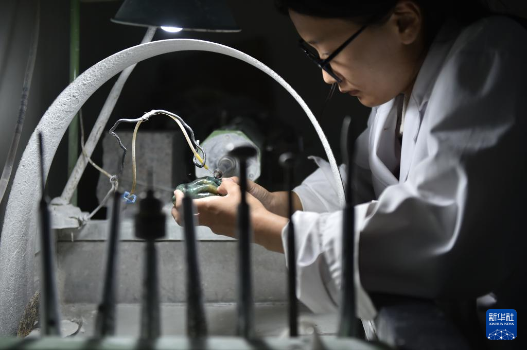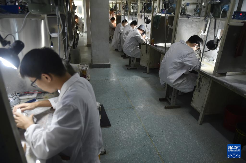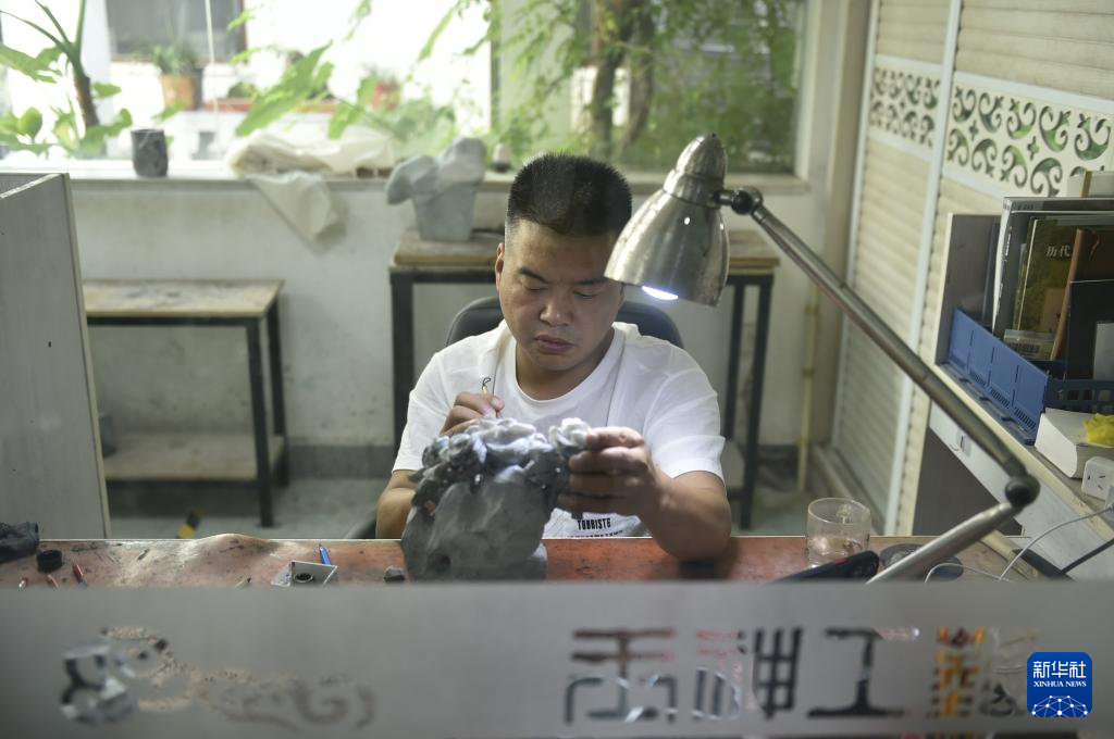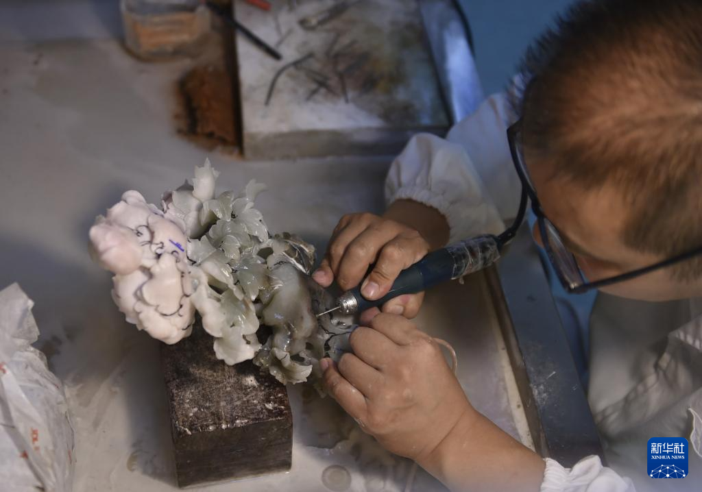 8月16日,河南省鎮(zhèn)平縣一家玉雕企業(yè)的工作人員在制作玉雕作品。