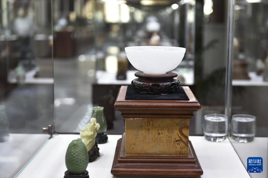 這是在位于河南省鎮(zhèn)平縣的中國玉雕大師創(chuàng)意園展廳內(nèi)拍攝的玉雕作品(8月16日攝)。