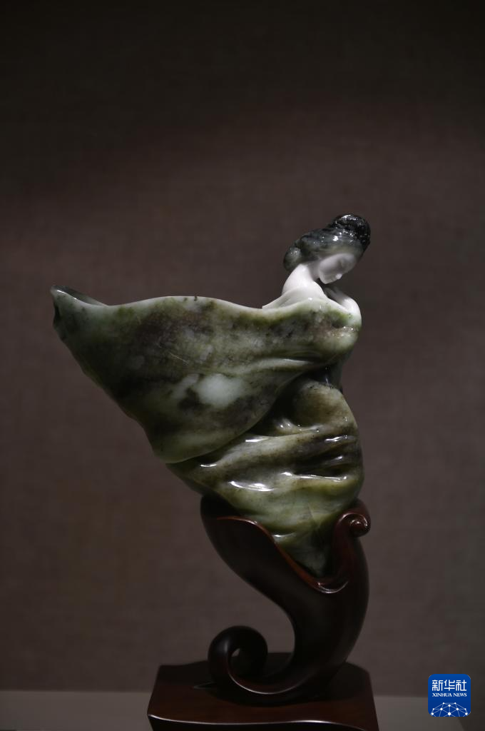 這是在河南省鎮(zhèn)平縣一家玉雕企業(yè)的展廳內(nèi)拍攝的玉雕作品《綠云清夢》(8月16日攝)。
