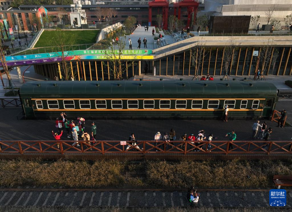 11月6日,游人在武漢市武昌四美塘鐵路遺址文化公園游覽(無人機(jī)照片)。