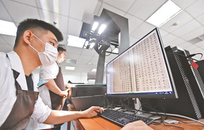 北京師范大學(xué)圖書(shū)館,工作人員正在將古籍進(jìn)行數(shù)字化處理。