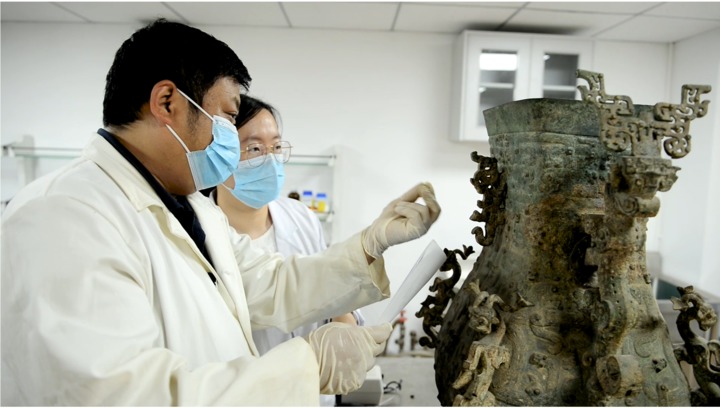 “隨著文物保護(hù)修復(fù)理念不斷進(jìn)步,現(xiàn)在不再單純強(qiáng)調(diào)干預(yù)性修復(fù),而是更加注重預(yù)防性保護(hù)?!倍虐舱f。像醫(yī)生對待“老病號(hào)”一樣,杜安對蓮鶴方壺也在進(jìn)行長期“隨診”,除了定期用技術(shù)手段進(jìn)行監(jiān)測外,只要有空,他都會(huì)去放置蓮鶴方壺的展柜旁溜達(dá)幾圈,“‘望聞問切’,得親眼看看才放心。”