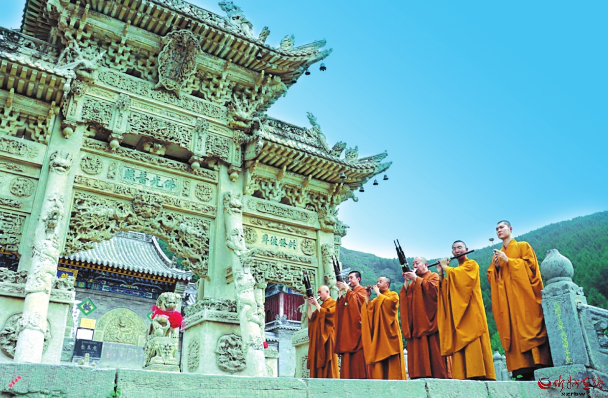 僧人正在演繹五臺山佛樂。
