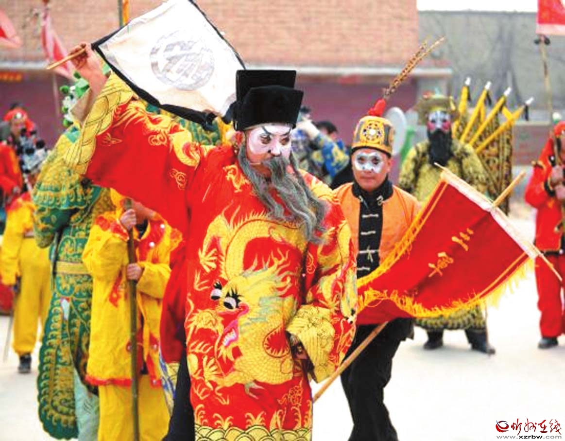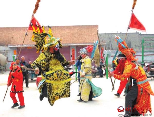 令人欣喜的是,今年的社火表演增加了很多新鮮血液,最小的表演者只有11歲。72歲的社火老藝人梁生偉是總教練,第十四代傳承人李軍平是演員兼教練。在他們帶領(lǐng)下,每一次演出從召集、化妝、著裝、配飾、道具,到列隊(duì)、祭旗、出征、行軍,以及演出中的傳丁、練兵、探馬、布陣、對壘、決戰(zhàn)、破陣等,每一個(gè)細(xì)節(jié)都有講究、說法和規(guī)矩。其行為規(guī)范貫穿著樸素的古代儒家哲學(xué)思想,其陣法擺出的是玄妙的古代軍事戰(zhàn)陣,如對打表演的是北宋楊繼業(yè)楊家軍的武術(shù)套路,鼓樂擊打出的是原始戰(zhàn)鼓石破天驚的鼓點(diǎn)風(fēng)格,給人以極大的歷史韻味和藝術(shù)享受。