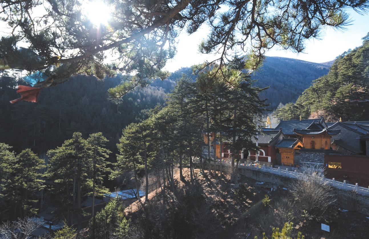 鎮(zhèn)海寺周圍森林茂密,主要樹種有油松、云杉、華北落葉松、青楊、白樺等,但最引人注目的還是分布在寺院周圍、面積達(dá)300多畝的油松林。這些古松高大挺直、姿態(tài)雄健,樹齡大約在300——400年之間,是五臺山最大的兩片古油松林之一(另一片為金崗庫后的油松林),也是五百里五臺山最享有盛譽(yù)的景觀林。