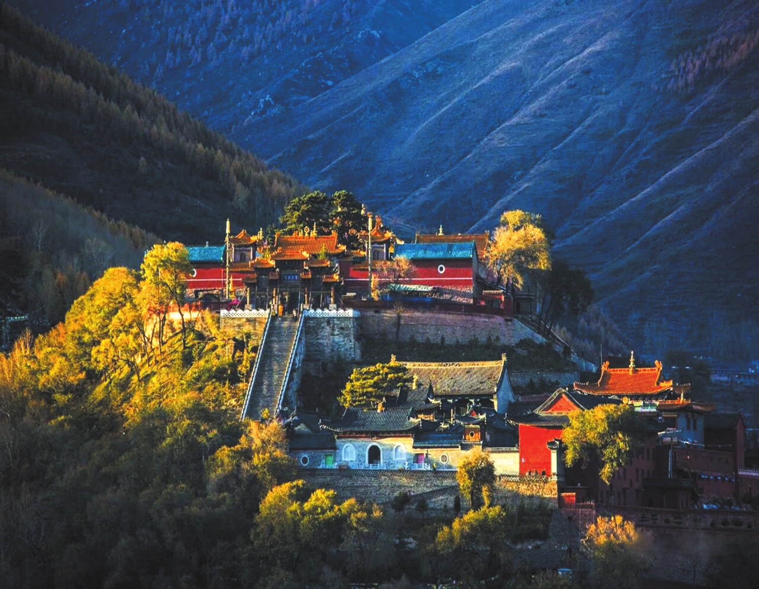 菩薩頂。劉永平攝 隨著抗日戰(zhàn)爭和世界反法西斯戰(zhàn)爭的勝利,五臺山地區(qū)作為革命根據(jù)地,積淀了深厚的紅色文化。當(dāng)1937年的炮火打破晨鐘暮鼓的生活,這個(gè)千年佛教圣地,在抗戰(zhàn)烽火中化作了革命的搖籃:八路軍總部曾在此運(yùn)籌帷幄,國際主義戰(zhàn)士白求恩在此救死扶傷,就連僧人也脫下袈裟投身抗日…… 1937年7月7日,盧溝橋事變發(fā)生后,中國共產(chǎn)黨領(lǐng)導(dǎo)的工農(nóng)紅軍改編為八路軍和新四軍,朱德任總指揮,彭德懷任副總指揮,指揮部隊(duì)奔赴山西抗日前線。9月,朱德、左權(quán)親自到南茹村選定八路軍總部駐地,他們認(rèn)為這里四面高山環(huán)抱,中間平坦開闊,交通方便,可防可攻。八路軍總部進(jìn)駐南茹村后,在平型關(guān)取得首次大捷,打破了日軍不可戰(zhàn)勝的神話,緊接著又連續(xù)指揮了切斷敵人雁門關(guān)交通運(yùn)輸線及夜襲陽明堡飛機(jī)場等戰(zhàn)斗,極大鼓舞了中國人民抗日必勝的信心和決心。 9月底,八路軍總部頒發(fā)了《關(guān)于動(dòng)員和組織群眾發(fā)展游擊戰(zhàn)爭的指示》,全面部署了組織發(fā)動(dòng)群眾開展游擊戰(zhàn)爭的工作,要求各部隊(duì)組織工作隊(duì),深入各地發(fā)動(dòng)群眾,建立地方黨組織和群眾團(tuán)體,成立民主政權(quán),發(fā)展地方武裝,為奪取抗戰(zhàn)勝利奠定了堅(jiān)實(shí)基礎(chǔ)。10月,隨著日軍不斷入侵和戰(zhàn)場形勢發(fā)展,在南茹村駐扎36天的八路軍總部惜別南茹、轉(zhuǎn)戰(zhàn)太行。 八路軍總部轉(zhuǎn)移后,黨中央決定派聶榮臻率軍在五臺山區(qū)創(chuàng)建敵后第一個(gè)抗日根據(jù)地。彼時(shí)的五臺山地區(qū),在日軍占領(lǐng)太原后四面受敵。國民黨政府形同虛設(shè),社會(huì)秩序一片混亂。聶榮臻在當(dāng)?shù)胤e極發(fā)展武裝力量,兵分多路開辟根據(jù)地。由于軍紀(jì)嚴(yán)明,所到之處秋毫無犯,且政策深得民心,所以很快就站穩(wěn)了腳跟。1937年11月,晉察冀軍區(qū)在五臺山普濟(jì)寺宣告成立,聶榮臻擔(dān)任司令員兼政治委員。會(huì)后,他率領(lǐng)部隊(duì)抵達(dá)臺懷鎮(zhèn),駐扎在當(dāng)?shù)亻_展抗日活動(dòng)。 聶榮臻領(lǐng)導(dǎo)五臺山100余名僧侶組成抗日隊(duì)伍,積極為戰(zhàn)爭捐物、捐糧、提供住處、傳遞情報(bào)、救治傷員等,使五臺山成為當(dāng)時(shí)僧民共同抗日的基地。1938年,聶榮臻率領(lǐng)軍隊(duì)多次在五臺山周圍與日軍交戰(zhàn)。以滑石片戰(zhàn)斗最為著名,經(jīng)過與敵奮力激戰(zhàn),全殲日軍500多人,繳獲大批武器。 1938年,加拿大共產(chǎn)黨員、國際主義戰(zhàn)士、著名胸外科醫(yī)師白求恩到達(dá)晉察冀抗日根據(jù)地,支援中國人民抗日戰(zhàn)爭。聶榮臻聘請他為衛(wèi)生顧問,幫助救治傷員。彼時(shí)由于敵人的嚴(yán)密封鎖,醫(yī)療器械供應(yīng)非常困難,白求恩便組織當(dāng)?shù)啬窘持谱鞲鞣N醫(yī)療用具,及時(shí)解決了很多問題。為了大力改進(jìn)戰(zhàn)場傷員救治工作,培養(yǎng)更多醫(yī)務(wù)人員,不斷提高醫(yī)療水平,白求恩提出抗日根據(jù)地應(yīng)該有一個(gè)比較正規(guī)的醫(yī)院,于是親自倡導(dǎo)設(shè)計(jì),將一個(gè)設(shè)備簡陋的醫(yī)療所改建成一個(gè)配備手術(shù)室、消毒室、醫(yī)務(wù)室、洗滌室的外科病室,被大家譽(yù)為“白求恩模范病室”。 1939年11月,白求恩在為一名戰(zhàn)士做手術(shù)時(shí),因左手中指被手術(shù)刀割破感染轉(zhuǎn)為敗血癥,醫(yī)治無效在河北省唐縣黃石口村逝世。晉察冀邊區(qū)召開追悼大會(huì),毛澤東題挽詞并撰寫《紀(jì)念白求恩》一文,號召共產(chǎn)黨員學(xué)習(xí)他“毫不利己,專門利人”的精神。從此,白求恩成為中國人民家喻戶曉的英雄,他的崇高精神和人格魅力鼓舞和激勵(lì)了一代又一代的華夏兒女。1969年,中共五臺縣委、五臺縣人民政府在五臺縣松巖口村建成白求恩紀(jì)念館。1982年白求恩模范病室舊址被國務(wù)院公布為全國重點(diǎn)文物保護(hù)單位,2021年被中央宣傳部命名為“全國愛國主義教育示范基地”。 1948年春,毛澤東率領(lǐng)中央機(jī)關(guān)經(jīng)岢嵐、五寨、神池、代縣、繁峙,抵達(dá)五臺山臺懷鎮(zhèn),路居于塔院寺方丈院。彼時(shí),雪后初晴,碧空萬里,五臺山佛教圣地沐浴在朝暉之中,顯得格外光彩奪目,典雅壯觀。在地方干部和老方丈陪同下,他們游覽了塔院寺的大慈延壽寶殿、大藏經(jīng)閣。從塔院寺出來,毛澤東等中央領(lǐng)導(dǎo)與陪同人員邊談邊走進(jìn)羅睺寺,興致勃勃地觀看了“開花現(xiàn)佛”,還詳細(xì)詢問了寺院的修繕工作和寺僧的生活情況,指示陪同的地方干部要抓緊寺院的修復(fù)和保護(hù)工作。離開羅睺寺,他們又進(jìn)入顯通寺參觀無量殿和銅殿,之后向鐘樓走去。樓內(nèi)懸掛著一口比人還高的大銅鐘,眾人品讀著鐘上鑄刻的經(jīng)文,不時(shí)向老方丈請教。 出了顯通寺,大家又興致勃勃地登上了菩薩頂。隨后返至五爺廟,進(jìn)入五龍王殿。老方丈介紹道:“五龍王殿建于清代,殿內(nèi)主供五龍王,俗稱‘五爺’,所以五龍王殿又稱‘五爺廟’。傳說五爺最愛看戲,對面那座戲臺就是專為給五爺唱戲而修建的。清代以來,五臺山每年要舉辦為期一個