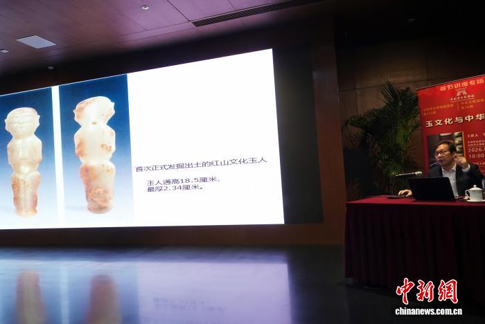 2月22日,中國考古博物館春節(jié)講座專場,劉國祥研究員作“玉文化與中華文明”主題學術(shù)報告,介紹紅山文化玉人。中新網(wǎng)記者 孫自法 攝