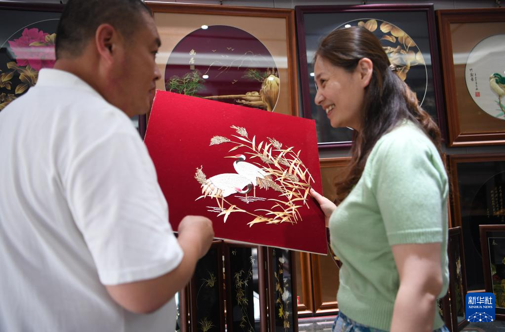除了照顧好傳習(xí)基地的學(xué)員,夫妻倆目前還在琢磨著擴展蘆葦畫的底色,同時升級畫框,讓蘆葦畫適合更多風(fēng)格的室內(nèi)場景,擴大銷路。新華社記者 張浩然 攝