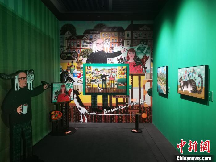 “尋喵啟事”藝術展展出了白俄羅斯藝術家利馬舍夫斯基·伊戈爾·維羅洛維奇和夫人謝梅廖娃·柳德米拉·列奧尼多夫娜共50幅藝術畫作。兩位藝術家將自家飼養(yǎng)的貓咪和其生活的城市明斯克共同融入一幅幅色彩明亮的畫作,構建了一個屬于“喵星人”的度假樂園。
