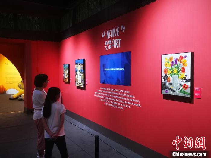 作為稚拙藝術畫作,此次展出的藝術畫作不同于學院派風格,呈現出自然天成、直接樸實的一面。藝術家在創(chuàng)作時,賦予貓咪一些人類特性,例如在一幅作品中,兩只貓相向而坐,似乎在討論案板上的魚肉是否符合胃口,“因為有的貓咪喜歡吃魚,有的喜歡吃雞肉,所以我們就進行了擬人化的解讀?!敝茉娀苷f。