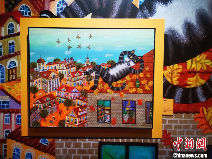 中新網 成都8月29日電(單鵬 程兆)“自從有了城市,屋頂就代替樹梢,成為了喵星人的新王位”。畫面中,一只黑灰色花紋的貓咪翹著二郎腿,悠閑地躺在屋頂,望著天空的飛鳥和白俄羅斯首都明斯克漂亮的建筑和街巷。這是四川博物院新展“尋喵啟事”藝術展中的一幅作品,充分展示了藝術家浪漫的想象力。
