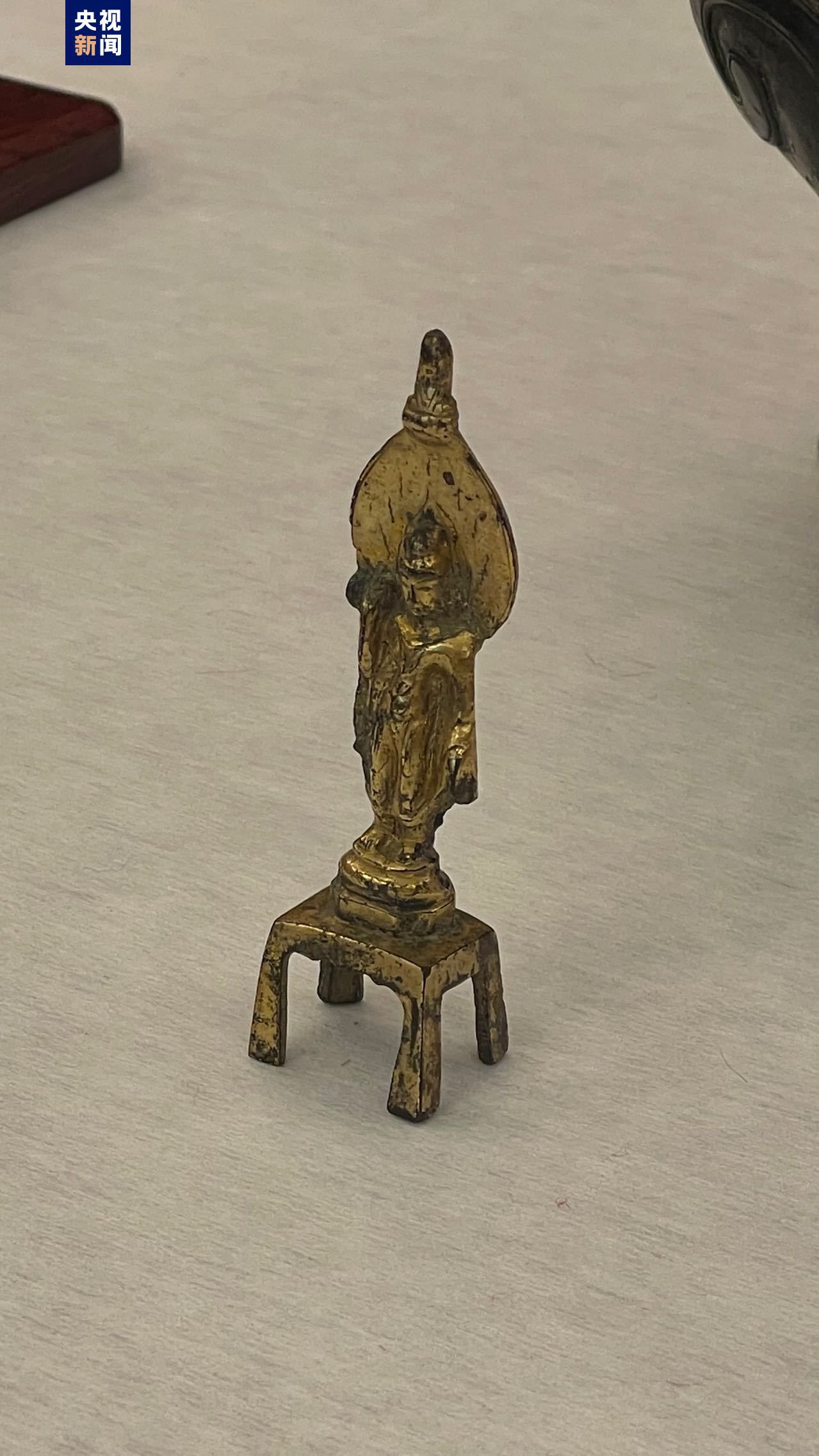 △彩繪陶制人物騎馬俑 本次歸還的文物包括潛龍化石、鎏金觀音銅像和彩繪陶制人物騎馬俑。經(jīng)初步鑒定,潛龍化石屬于晚侏羅世到早白堊世的恐龍化石,而觀音銅像和騎馬俑的歷史可追溯到唐代甚至北朝,具有珍貴的歷史文化價值。同時,澳大利亞國家美術(shù)館還另外向中國政府捐贈了一件牛形的盛酒禮器——“犧尊”。我國文物專家通過對文物基本信息和圖片的判斷,鑒定這件“犧尊”用途為酒器,是明清或近代的仿古文物藝術(shù)品。