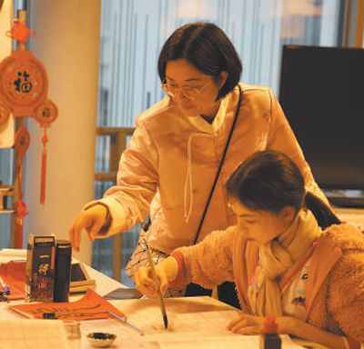 11歲的拜德細心地勾勒著龍的輪廓。他說:“我知道十二生肖,龍在中國文化里代表著力量和好運?!闭趯W寫“福”字的愛麗說:“我爺爺和爸爸都去過中國,說那里風景很美,我長大也要去中國看看?!?/p>