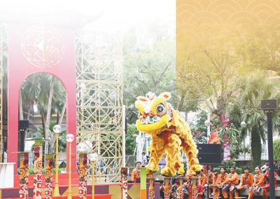 2月3日,在印尼雅加達翠貝卡廣場上,人們舉行舞獅表演喜迎新春。本報記者 曹師韻攝