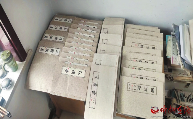 為了練字,他連手機(jī)也不買,惹得好多親朋好友找不到他。他橫下一條心,一個(gè)字可以練千遍、萬遍;一支毛筆握在手心不離不棄,天天寫,月月寫,年年寫,這一寫就寫了26年。為了寫好一個(gè)字,弄懂一個(gè)字,他不知道要練習(xí)多少遍,查多少次字典。由寫字到學(xué)文,他選擇了“四大名著”。古人筆錄者層出不群,“眼過千遍,不如手過一遍”。抄書不僅練習(xí)了書法,怡養(yǎng)性情,關(guān)鍵是補(bǔ)習(xí)了博大精深的中國(guó)文化。