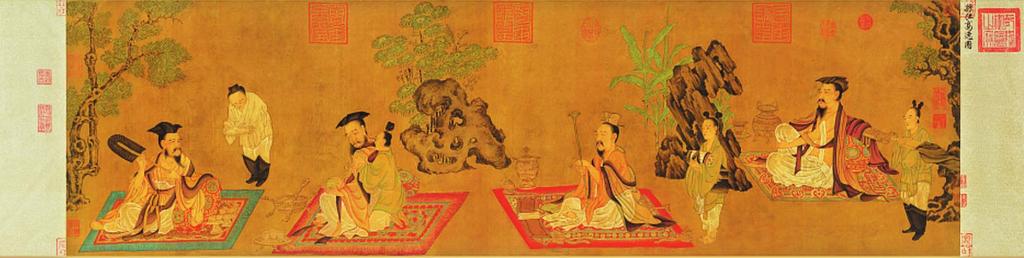 花鳥(niǎo)畫(huà)發(fā)端更晚,魏晉隋唐時(shí)期,尚未形成獨(dú)立的畫(huà)科,往往于人物、山水中作為襯景出現(xiàn)。不過(guò)正是這些襯景的描繪,成為日后花鳥(niǎo)門(mén)類(lèi)形成與發(fā)展的基礎(chǔ)。如唐代孫位《高逸圖》,樹(shù)木、湖石、芭蕉的畫(huà)法已成熟,一旦從人物畫(huà)背景中脫離出來(lái),便足以獨(dú)立成科了。因此,五代以后花鳥(niǎo)畫(huà)蓬勃發(fā)展,是水到渠成之事。