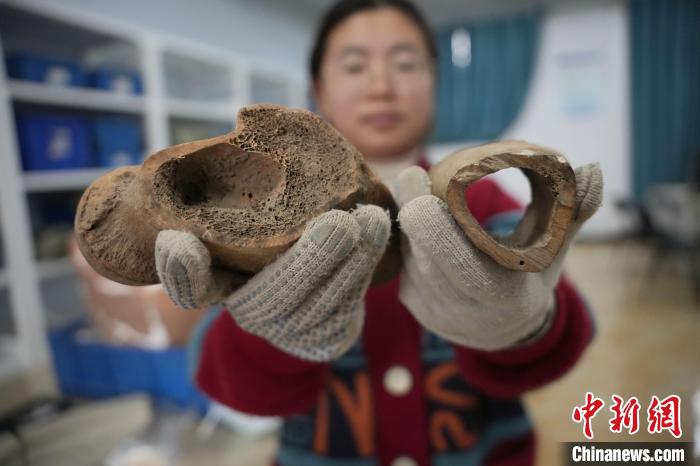 據中國人民大學歷史學院考古文博系從事科技考古研究的吳曉桐介紹,這次發(fā)現的牛、羊、馬、豬等動物骨骼,很多有切割、打磨、鉆孔的加工痕跡,屬于骨器半成品,推測這些骨骼被用來制作骨器。
