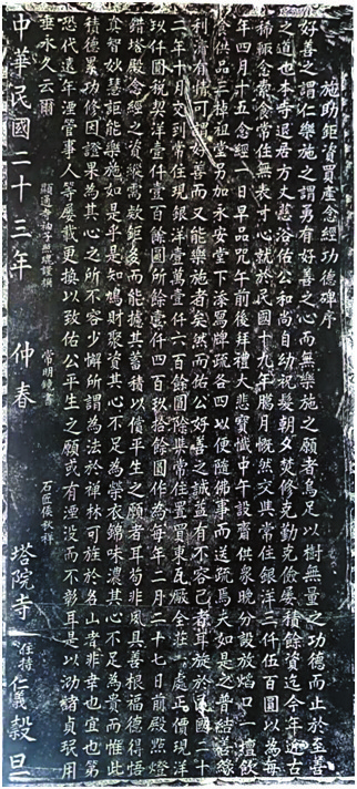 五臺(tái)山碑文書法以楷書居多,大部分傳承了唐楷工整嚴(yán)謹(jǐn)?shù)娘L(fēng)格。其中有的受歐陽(yáng)詢、褚遂良瘦硬書風(fēng)影響,如明正德皇帝敕御馬監(jiān)太監(jiān)韋敏碑拓片,寫得堅(jiān)硬勁拔,用筆靈動(dòng)飄逸;有的受顏真卿作品雄渾豪放之風(fēng)影響,用筆提按明顯,體態(tài)豐厚;也有的受柳公權(quán)險(xiǎn)勁瘦硬書風(fēng)熏陶,如塔院寺拓片,字體瘦硬,骨力遒勁,結(jié)體嚴(yán)謹(jǐn)。這些楷書作品用筆質(zhì)樸無(wú)華,結(jié)構(gòu)布局自然,多出自民間書法愛(ài)好者之手。他們憑借毛筆、鑿刀等簡(jiǎn)易工具,依據(jù)個(gè)人偏好進(jìn)行模仿,不刻意追求技巧精妙,而是隨心所欲地刻出形態(tài)各異的字體。