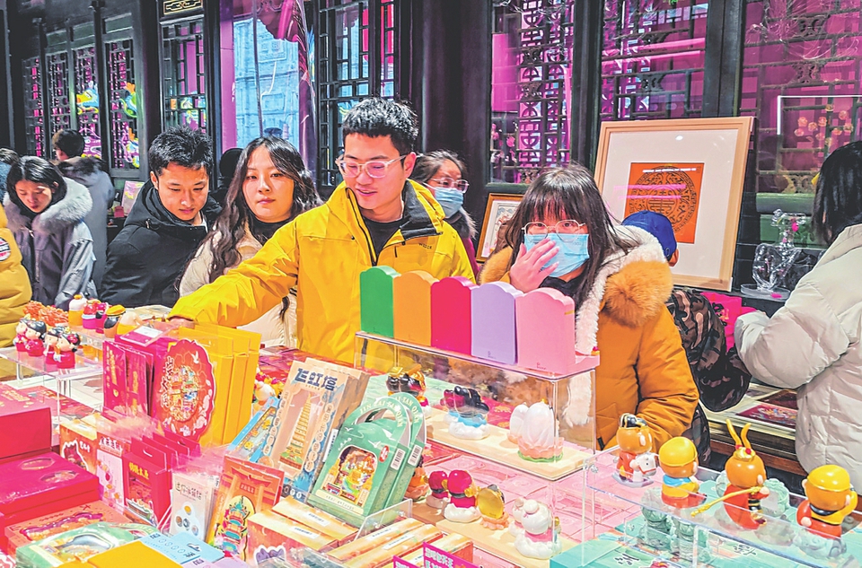 太原古縣城的非遺文創(chuàng)產(chǎn)品吸引眾多年輕人觀賞。