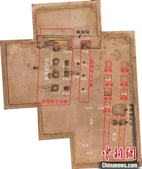 圖為河南洛陽白草坡東漢陵園遺址發(fā)現(xiàn)的鐘虡類建筑遺址。洛陽市考古研究院供圖