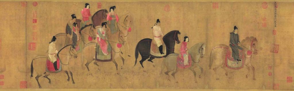 唐朝初年,百姓在寒食節(jié)掃墓,并在墓前食用貢品、郊游春嬉的習俗已蔚然成風,并引起了朝廷注意。唐高宗時期,朝廷發(fā)布了一道詔令,禁止民間在“臨喪嫁娶”和“送葬之時”,共為歡飲。然而,這些在祭祖期間踏青游玩的民間習俗,并沒有因朝廷的禁令而衰減,反而越來越興盛。到唐玄宗開元年間,朝廷見禁令難行,無奈又準許恢復了之前的節(jié)俗模式。杜甫《清明》詩云,“著處繁花務是日,長沙千人萬人出。渡頭翠柳艷明眉,爭道朱蹄驕嚙膝”,描繪了彼時男女老少乘船騎馬、踏青賞春的熱鬧場景。