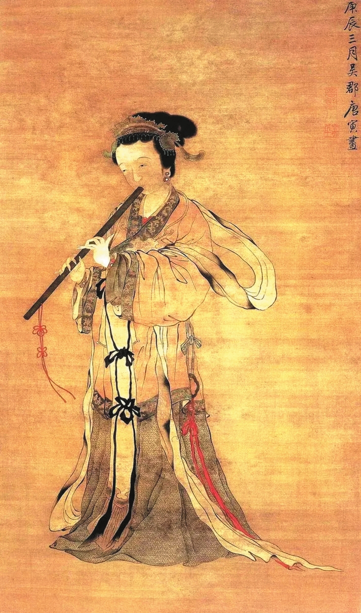 唐代稱笛聲為“龍吟”,稱簫為“鳳簫”。以龍鳳稱笛簫,可見這兩件竹樂器在眾多樂器中的地位。李白詩云:“笛奏龍吟水,簫鳴鳳下空?!逼鋵?shí),簫和笛在吹奏方式上明顯不同,笛子要橫著吹,簫要豎著吹,而且簫音量較小,音色輕柔,比起笛子的音色,更有一種幽怨之意。相傳在當(dāng)年的垓下之圍中,張良就用簫勾起了楚軍將士的思鄉(xiāng)之情。篪也是一種需要橫吹的樂器,但是開口在管的中間,吹奏時(shí)持管的方式有點(diǎn)像在舉杠鈴。
