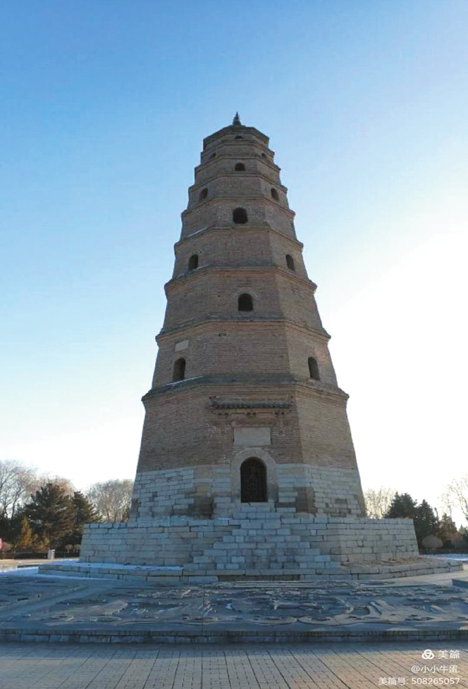 偏關(guān)縣城東山上的文筆塔,又稱“文筆凌霄塔”,是一座保存完好的空心磚塔。始建于明朝天啟元年(1621),原為一座七層磚石結(jié)構(gòu)八角雁塔。崇禎八年(1635)加高四層,共十一層,上書“文筆凌霄”字樣。塔高35米,塔底周長29米。清代咸豐七年(1857)文筆凌霄塔因風(fēng)雨侵蝕嚴重。新中國建立以后,偏關(guān)人民又重修寶塔。