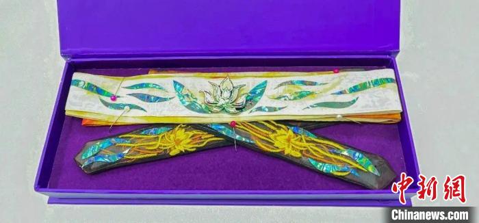 一旁,葉晶晶則忙著給影視劇劇組提供非遺道具?!芭c《永夜星河》制作團(tuán)隊(duì)的合作,標(biāo)志著我們首次嘗試將傳統(tǒng)工藝與現(xiàn)代影視藝術(shù)進(jìn)行融合。我們結(jié)合了傳統(tǒng)的螺鈿工藝與絲綢工藝,不僅推出了螺鈿發(fā)帶,還設(shè)計(jì)了蓮花頭飾和掛飾。每一步驟都經(jīng)過精心策劃和細(xì)致制作,最終讓這些螺鈿飾品成為劇中最閃亮的道具?!?/p>