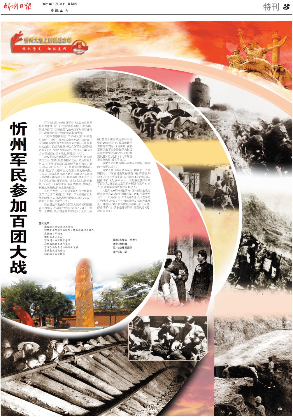 在百團(tuán)大戰(zhàn)中,五臺(tái)縣軍民配合晉察冀軍區(qū)第二分區(qū)第4團(tuán)打擊日軍。第4團(tuán)在百團(tuán)大戰(zhàn)期間戰(zhàn)斗60余次,斃傷敵偽530余人,完成了鉗制五臺(tái)地區(qū)之?dāng)车娜蝿?wù)。