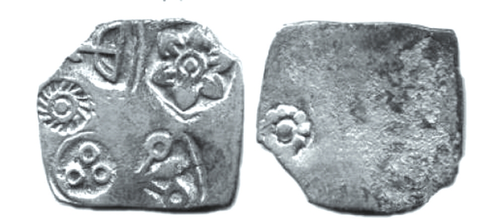 古印度摩揭陀國孔雀王朝時(shí)期的卡夏帕那銀幣,似乎可以為亞里士多德的說法提供佐證??ㄏ呐聊倾y幣的具體起源時(shí)間不詳,其名源自重量單位“卡夏”,形制為切割成型的銀片或銀塊,正面加蓋戳記作為價(jià)值標(biāo)識(shí),戳記數(shù)量通常為一個(gè)至六個(gè)不等。早期的卡夏帕那銀幣可能由民間或地方勢力發(fā)行,其價(jià)值除了依托銀材本身的重量與成色,很大程度上取決于加蓋戳記的發(fā)行人或認(rèn)證人的信譽(yù)背書。