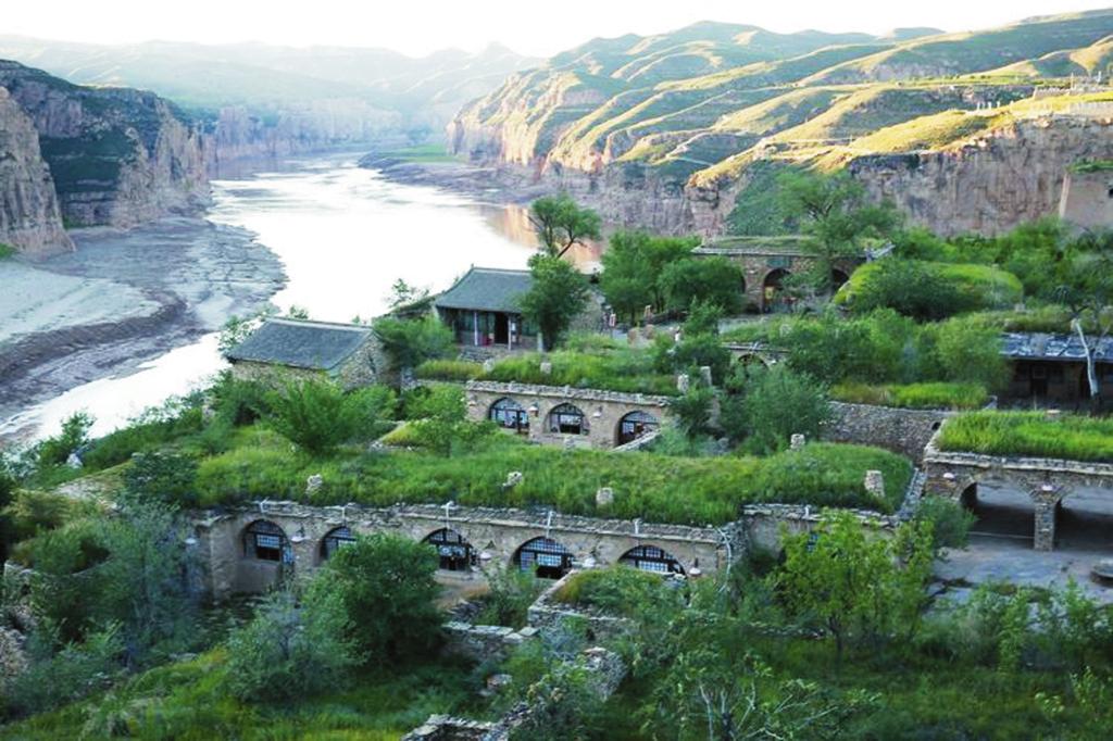 一眼望不到頭的長城從遠(yuǎn)處山梁上綿延而來直達(dá)河邊。看不見激流奔涌,聽不見黃河濤聲,清清的河水在這里悠悠徜徉盤桓。如果說長城如父親般剛強(qiáng)有力,沉雄穩(wěn)健,黃河如母親般溫柔親切,寬懷博大,那寺溝恰如父母懷中幸福溫婉的小孩。寺溝慵懶地在河邊梳洗自己的容顏,連同身邊的長城倒影在粼粼的河水中,展現(xiàn)出難得的田園詩般的浪漫與柔情。山上長城夯土保持完整,有青銅群雕,旌旗獵獵,似將軍正在縱馬出巡。登墩臺(tái)四望,視野開闊,長城下人家炊煙裊裊,雞犬相聞。峽谷中游船往來,馬達(dá)轟鳴聲中幾只野鴨貼著河面飛向不遠(yuǎn)的村子,飛向?qū)Π渡窖?。寺溝,一個(gè)把塞北風(fēng)光與江南水鄉(xiāng)有機(jī)融為一體的地方。