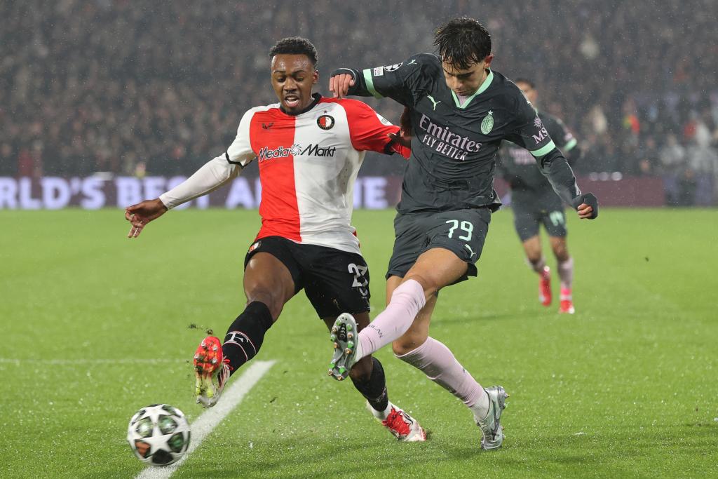 荷甲勁旅費(fèi)耶諾德主場(chǎng)迎戰(zhàn)AC米蘭,開場(chǎng)3分鐘,主隊(duì)取得閃電進(jìn)球。巴西前鋒派尚左路帶球,內(nèi)切后直接遠(yuǎn)射,客隊(duì)門將邁尼昂撲救失誤,AC米蘭0:1落后。此后雙方均未能改寫比分。