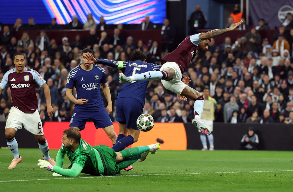 在維拉公園球場的雨戰(zhàn)中,首回合主場3:1勝出的巴黎圣日耳曼先聲奪人。第11分鐘,登貝萊左路突破后橫傳門前,維拉門將馬丁內(nèi)斯撲球失誤,阿什拉夫抓住機會勁射破網(wǎng)?!按蟀屠琛痹诘?7分鐘打出高效反擊,登貝萊助攻左后衛(wèi)門德斯低射命中,將領(lǐng)先優(yōu)勢擴大為2:0。