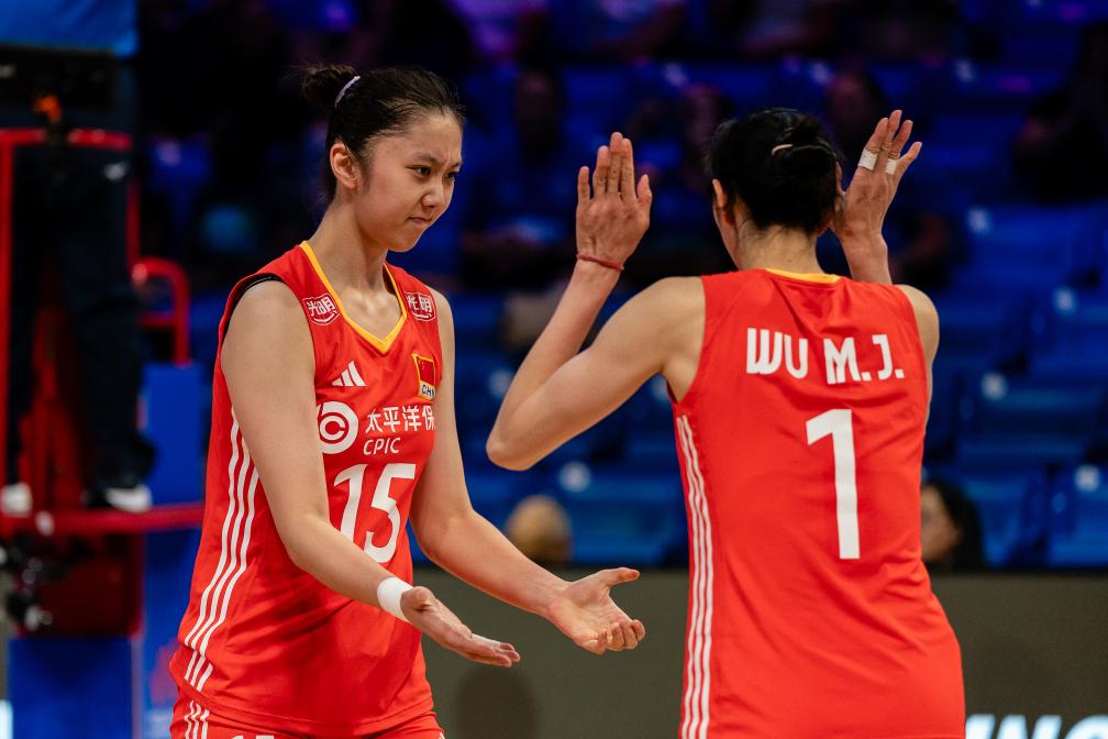 決定勝負(fù)的第五局,中國隊一度以10:7領(lǐng)先,但多米尼加隊追至13平。面對令人屏息的局末關(guān)鍵分,中國隊干脆利落連得兩分,以15:13笑到最后。