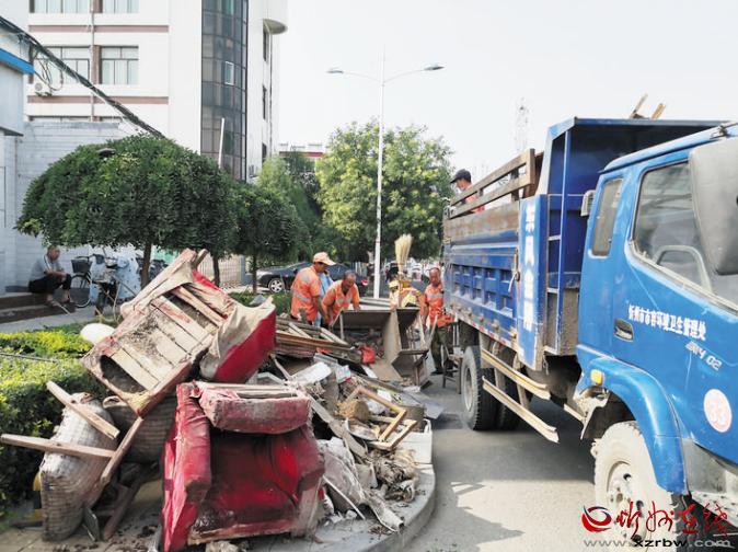 8月2日,忻州城區(qū)環(huán)衛(wèi)工人正在清運(yùn)垃圾。今年是第六屆創(chuàng)建全國文明城市評選決勝之年。在市創(chuàng)建全國文明城市總指揮部的統(tǒng)一協(xié)調(diào)指揮下,結(jié)合當(dāng)前正在開展的城區(qū)“兩下兩進(jìn)兩拆雙修一提升”專項(xiàng)整治行動(dòng),近日,各單位和居民小區(qū)清潔環(huán)境,助力創(chuàng)建全國文明城市。市市容環(huán)境衛(wèi)生管理處組織環(huán)衛(wèi)工人和車輛對指定堆放的垃圾進(jìn)行了集中清運(yùn)。 張劍雄 攝