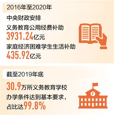 目前,全國1.54億城鄉(xiāng)義務教育階段學生都享受著一份“大禮包”:免除學雜費、免費提供教科書,家庭經濟困難學生還能補助生活費。2016年至2020年,中央財政共安排義務教育公用經費補助3931.24億元,家庭經濟困難學生生活補助435.92億元,免費教科書補助712.13億元。
