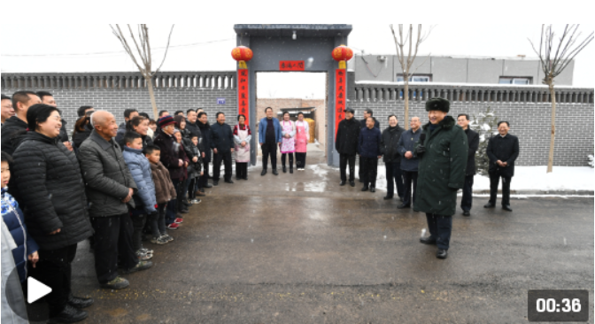6日下午,習近平總書記冒雪來到山西霍州市師莊鄉(xiāng)馮南垣村,實地了解山西災(zāi)后恢復(fù)重建等情況。習近平對鄉(xiāng)親們說,我今天到山西來,主要是關(guān)心去年災(zāi)情對大家生產(chǎn)生活造成的影響。讓我感到欣慰的是,雖然這次災(zāi)害很嚴重,但在黨和政府關(guān)心幫助下,有你們的自力更生,很快把災(zāi)后重建和秋冬補種工作抓了起來,我心里有了底。一定要把這個年過好!