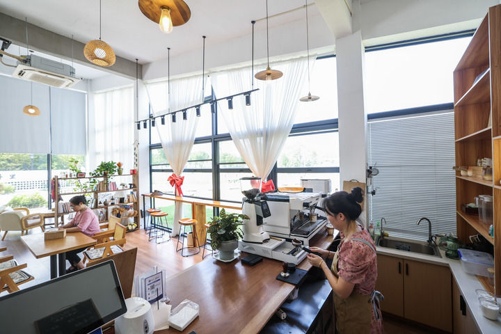 2025年8月27日在浙江省湖州市長(zhǎng)興縣虹星橋鎮(zhèn)宋高村稻香伴日營(yíng)地內(nèi)拍攝的咖啡屋。這是宋高村做優(yōu)全域土地整治后的農(nóng)文旅新嘗試,集餐飲、旅游、農(nóng)業(yè)和文化于一體。新華社記者 徐昱 攝