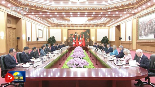 1月16日上午,國家主席習近平在北京人民大會堂會見來華進行正式訪問的加拿大總理卡尼。