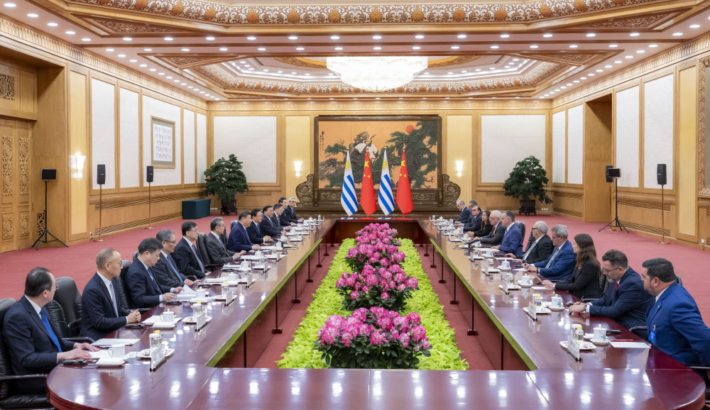 習(xí)近平指出,當(dāng)今世界正處于百年未有之大變局,國際形勢(shì)變亂交織,單邊霸凌愈演愈烈,中方支持烏拉圭接任“77國集團(tuán)和中國”輪值主席國,愿與烏方加強(qiáng)全球南方團(tuán)結(jié)協(xié)作,共同推進(jìn)平等有序的世界多極化、普惠包容的經(jīng)濟(jì)全球化,攜手并進(jìn)、共謀發(fā)展,為構(gòu)建人類命運(yùn)共同體作出更大貢獻(xiàn)。中方始終重視中拉關(guān)系,支持拉美和加勒比國家維護(hù)自身主權(quán)、安全、發(fā)展利益,支持烏拉圭接任拉美和加勒比國家共同體以及南方共同市場(chǎng)輪值主席國,愿同烏方和地區(qū)國家推動(dòng)共建中拉命運(yùn)共同體走深走實(shí)。