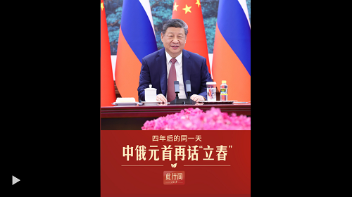 四年前的2月4日,習(xí)近平主席在會見普京總統(tǒng)時曾提到“立春”。四年后的同一天,中俄元首再話“立春”。作為中國傳統(tǒng)二十四節(jié)氣之首,立春象征著春回大地,代表著新的開始。再啟新程,中俄共同擘畫兩國關(guān)系新的藍圖。