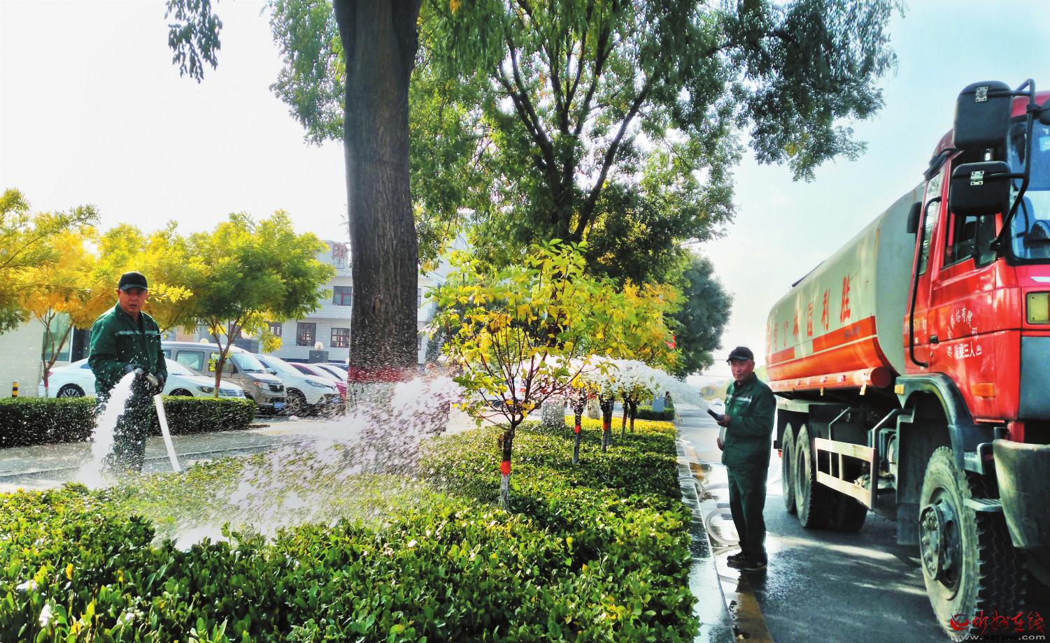 10月15日,園林工人正在忻州城區(qū)長征西街澆灌道路兩旁的綠植,精心養(yǎng)護(hù),讓綠化成果成為城市的亮點。 (宮清華 攝)